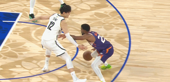 這是曾凡博唯一一次持球進(jìn)攻,可惜小曾持球突破運(yùn)到背上差點(diǎn)失誤,無(wú)疾而終。