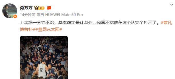 北京媒體人“勇方方”評論表示:上半場一分鐘不給,基本確定是計(jì)劃外.,我真不覺他在這個(gè)隊(duì)完全打不了。